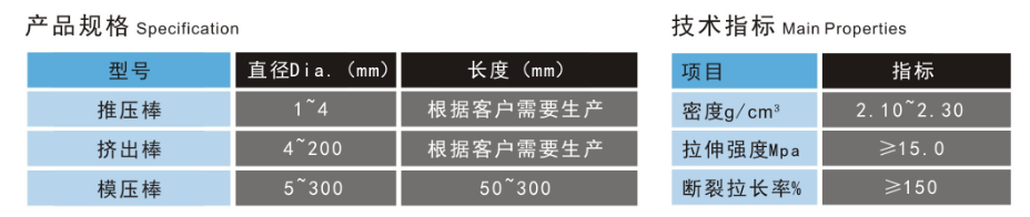 模壓、糊膏擠出或柱塞擠出工藝成型的棒材。